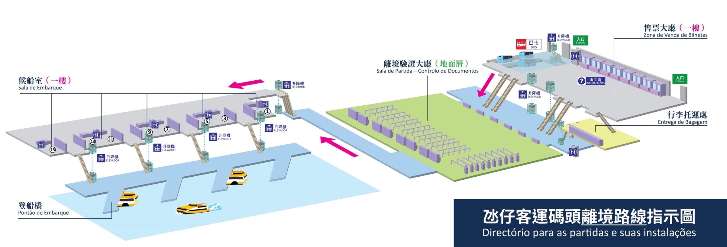 2、碼頭離境路線示意圖及相關設施