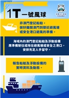 因應本澳氣象部門發出熱帶氣旋信號,海事及水務局呼籲海事業界、漁船、內港各碼頭和公眾密切留意天氣變化,提早做好防風措施,海上客運航線會因應海況變差而暫停,市民和旅客應提前做好出行安排。