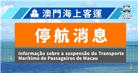 受熱帶氣旋影響,海面風浪較大,為配合鄰近地區的防風計劃及保障海上客運安全,澳門往返珠海灣仔、深圳和中山的部份航線於今日(4日)發出尾班船後停航,其中澳門內港往珠海灣仔尾班船19:50開出,澳門氹仔往深圳蛇口尾班船21:00開出,澳門氹仔往中山航班即時停航至明日。
