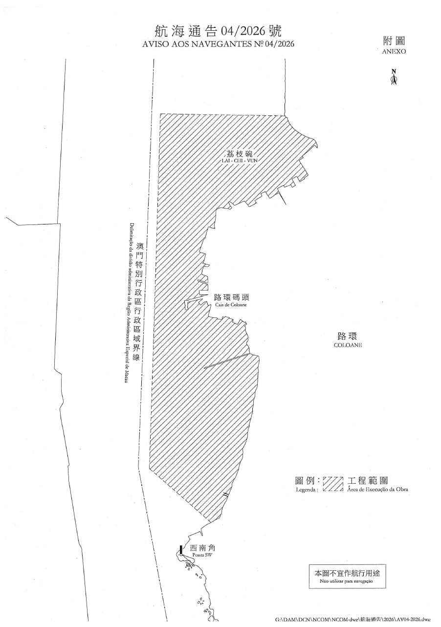 由2026年1月17日至2027年1月16日,於路環荔枝碗至西南角燈樁之間海面有海事工程進行;