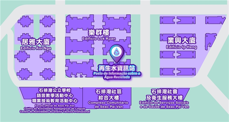 為使再生水順利入戶和正確應用,海事及水務局深入社區,聯同澳門自來水股份有限公司、民众建澳聯盟、恩暉長者綜合服務中心、路環石排灣居民互助會、街總石排灣家庭及社區綜合服務中心、澳門工會聯合總會、澳門中華學生聯合總會、澳門婦女聯合總會,於石排灣樂群樓第三座休憩區及澳門大學E4劉少榮樓設置“再生水資訊站”,為市民提供再生水資訊,展期由即日起至4月29日,更有專員在特定時間現場為市民介紹再生水和解答查詢,積極幫助市民認識再生水。