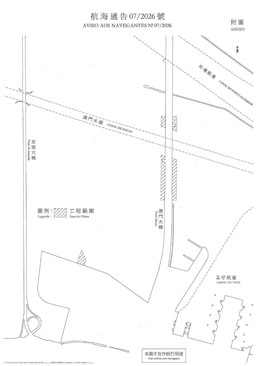 由2026年2月4日至2026年12月28日,位於澳門水道澳門大橋通航孔附近海面,有海事工程進行;