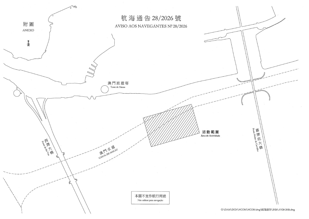 航海通告28/2026號 澳門旅遊塔對開海面-無人機編隊表演