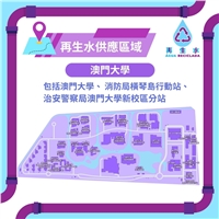 答:再生水現階段其用途只限於沖廁及綠化,故只是局部代替自來水。再生水應用有助節約自來水,保障澳門供水安全。