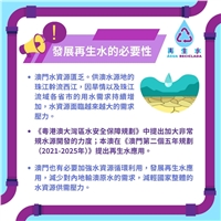 為保障澳門供水安全,除了依靠國家的大力支持外,澳門也需加強水資源循環利用,建設節水型社會。